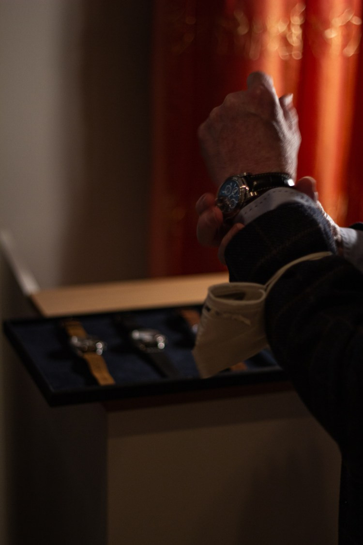 Das Highlight des Abend kam zum Dessert …. Der neue Automatik-Chrono Schallmauer. Die Uhr soll im Februar über eine Kickstarter Kampagne finanziert werden. Am Abend durfte sich ein Teilnehmer über den Gewinn der Kaufoption seiner Wunschnummer ( Nr.1) freuen. Die finalen Prototypen konnten die Gäste ausführlich am Abend begutachten und ihre weiteren Fragen stellen.